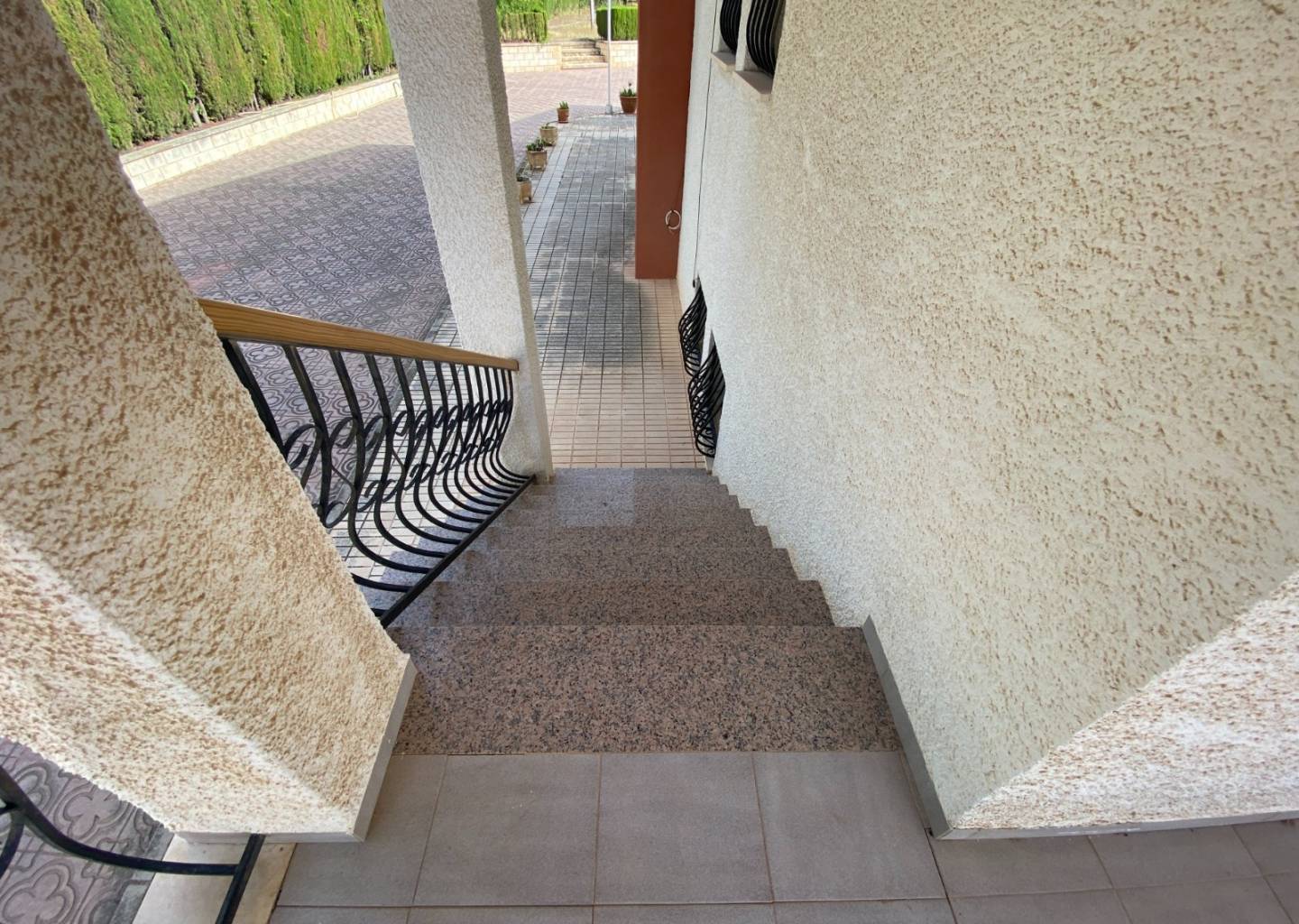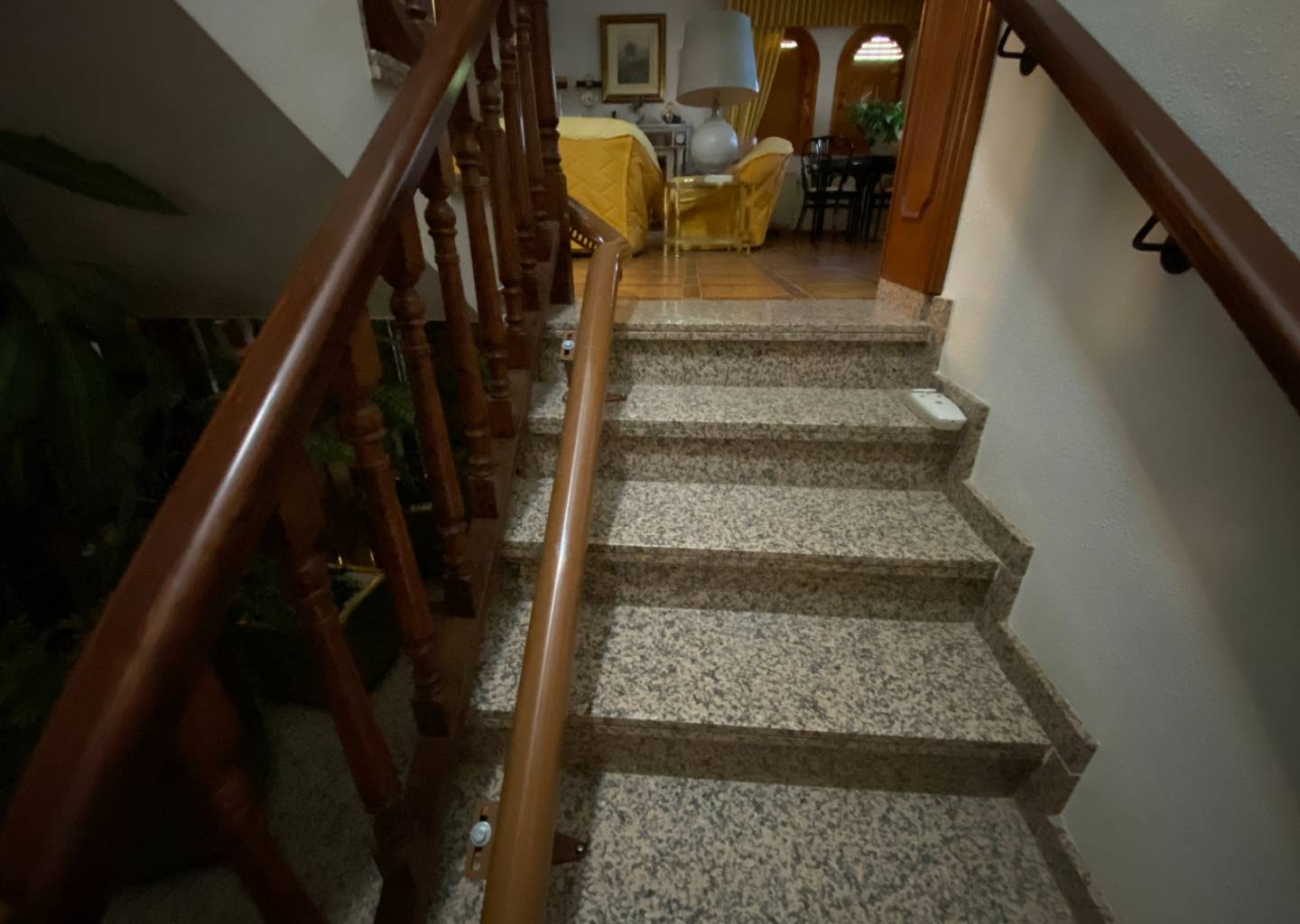 Llegamos a la casa principal, la cual tiene varios accesos directos al interior, uno de ellos desde el frente de la casa, otro desde la parte trasera, y 2 accesos desde la zona de piscina, uno de ellos directos a la cocina, y el otro a las escaleras donde puedes acceder a la planta baja, o a las 2 plantas superior.