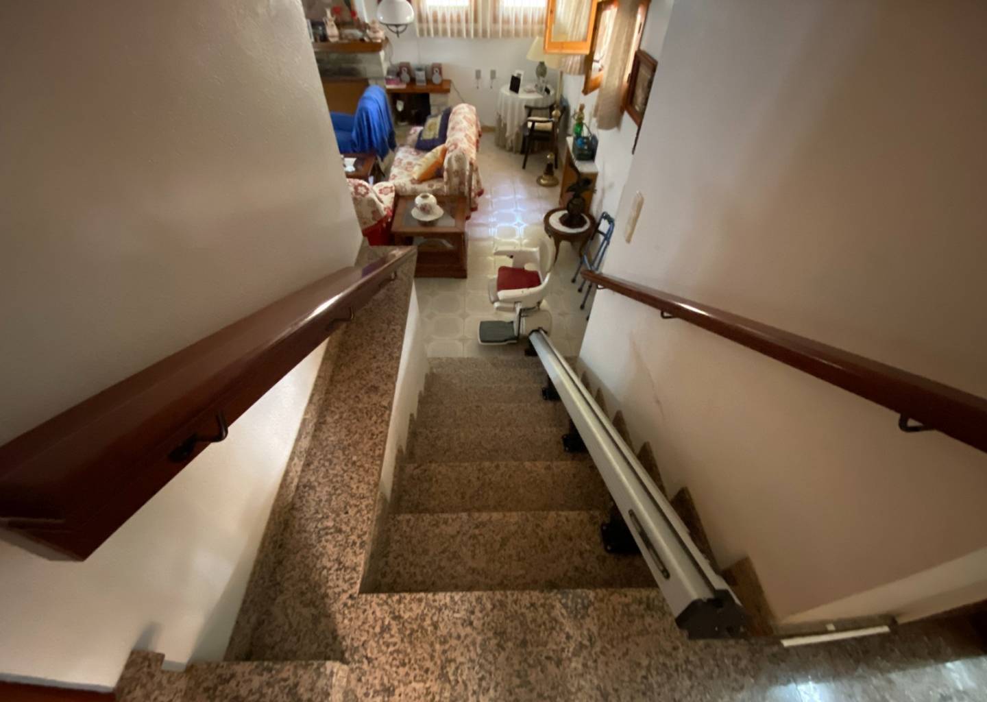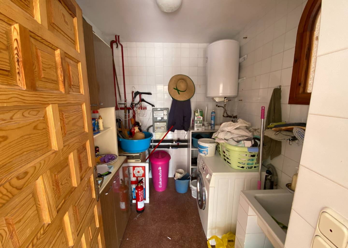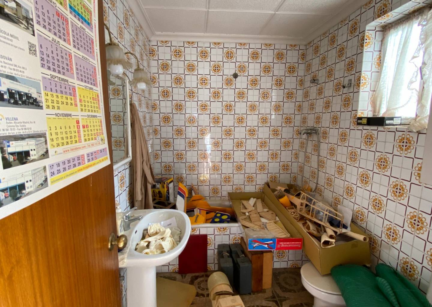 Para hacerlo más fácil, accedemos desde la marquesina, donde encontramos también la zona de lavadero. Entramos a la casa y a mano derecha hay un baño con plato de ducha, al frente unas pequeñas escaleras que bajan a la planta baja donde encontramos un amplio salón con chimenea, un dormitorio y cocina.