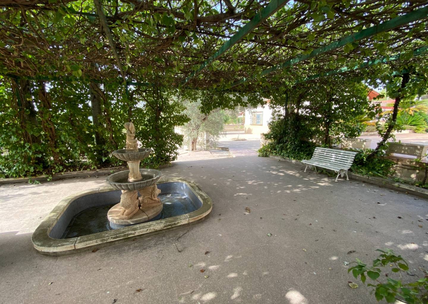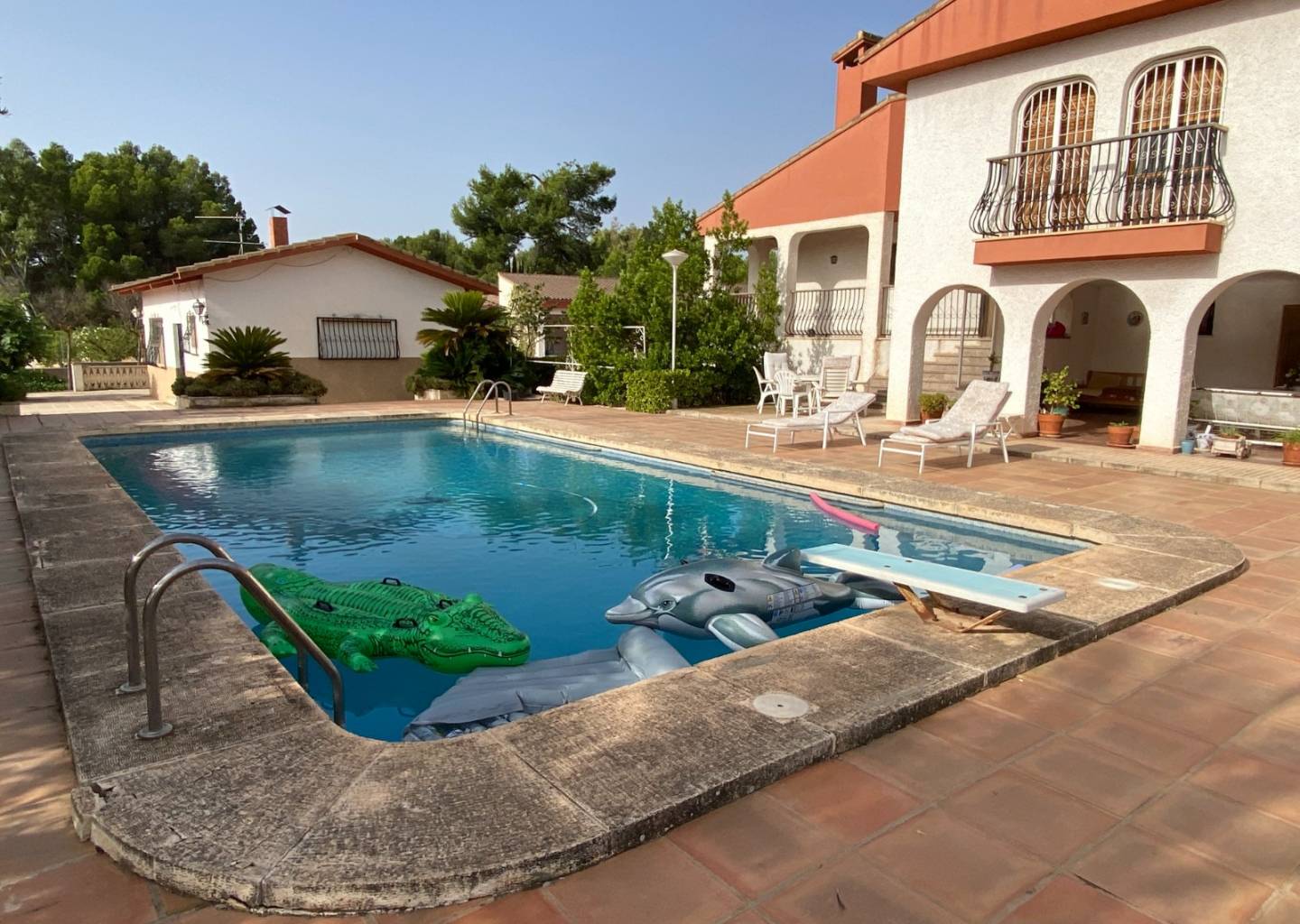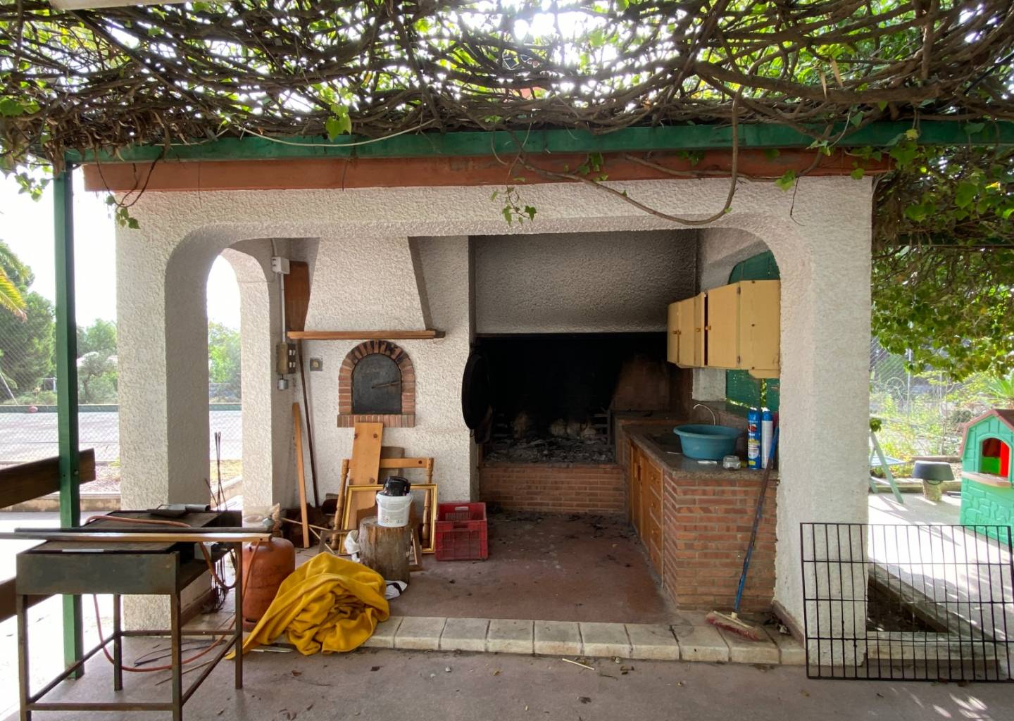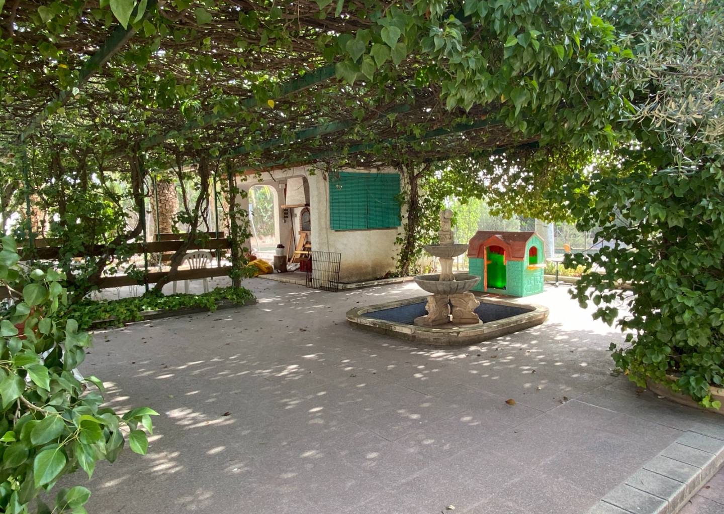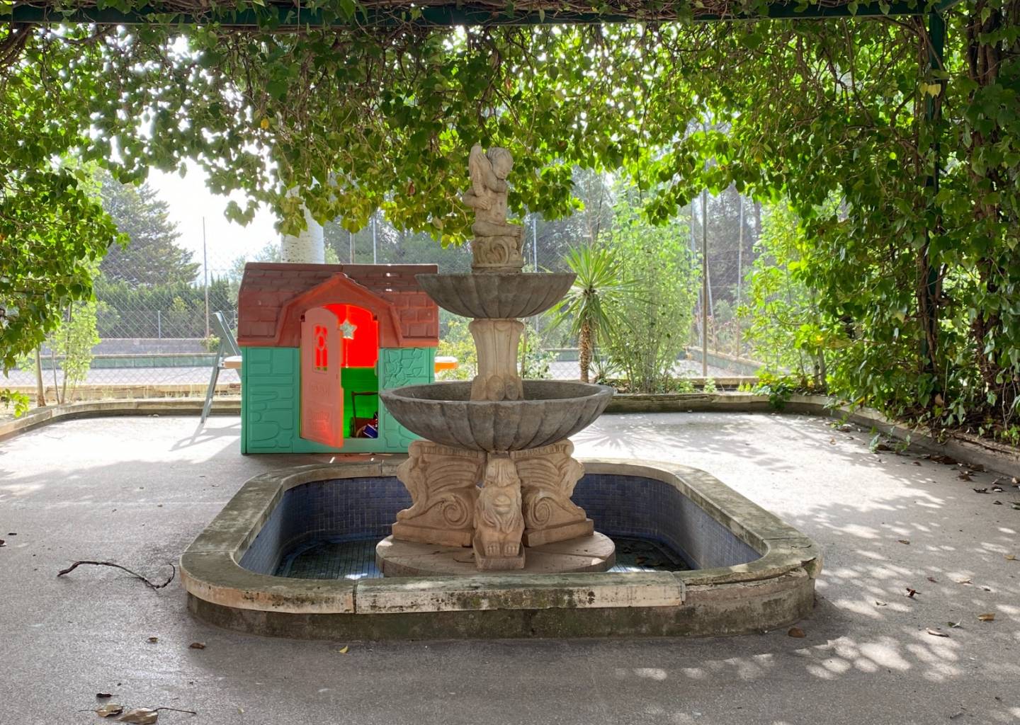 Al frente nos encontramos una gran casa con marquesina junto a la piscina, zona donde también encontramos una pista de tenis, una pequeña casita donde está la depuradora y que además se utiliza como trastero, y la mejor parte, un precioso jardin, rodeado de enredaderas y con una bonita fuente decorativa, pero esto no es lo mejor, ya que en esta área se encuentra la barbacoa, por lo que es perfecto para el verano mientras cocinas, tomarte un aperitivo y comer en la sombra.