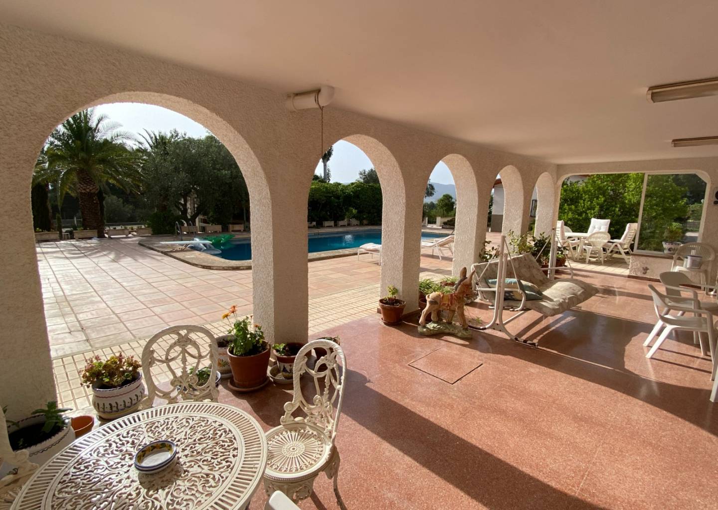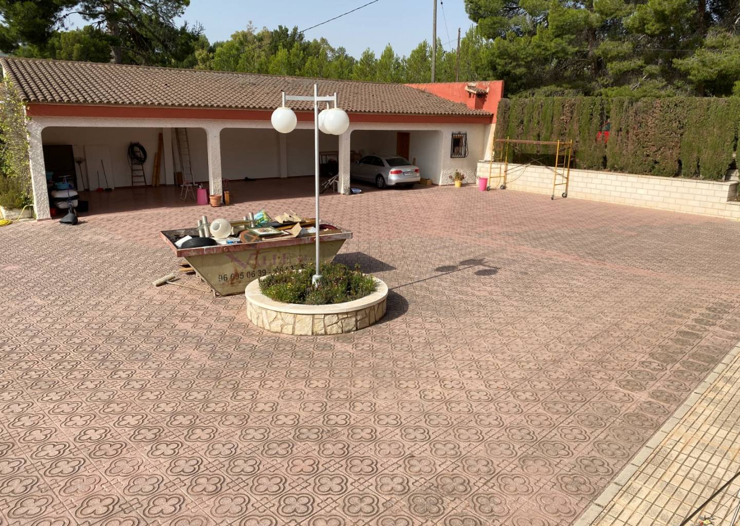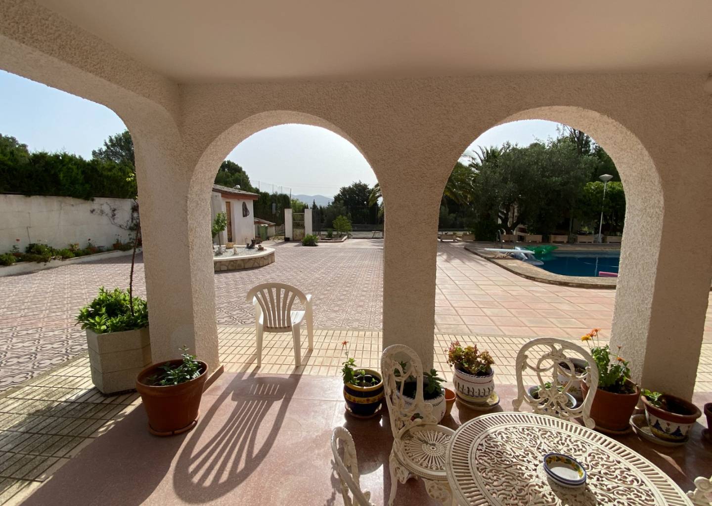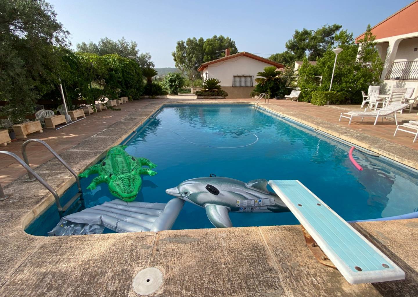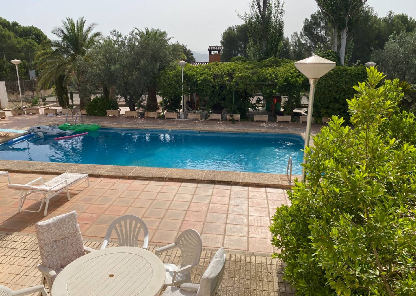 Al frente nos encontramos una gran casa con marquesina junto a la piscina, zona donde también encontramos una pista de tenis, una pequeña casita donde está la depuradora y que además se utiliza como trastero, y la mejor parte, un precioso jardin, rodeado de enredaderas y con una bonita fuente decorativa, pero esto no es lo mejor, ya que en esta área se encuentra la barbacoa, por lo que es perfecto para el verano mientras cocinas, tomarte un aperitivo y comer en la sombra.