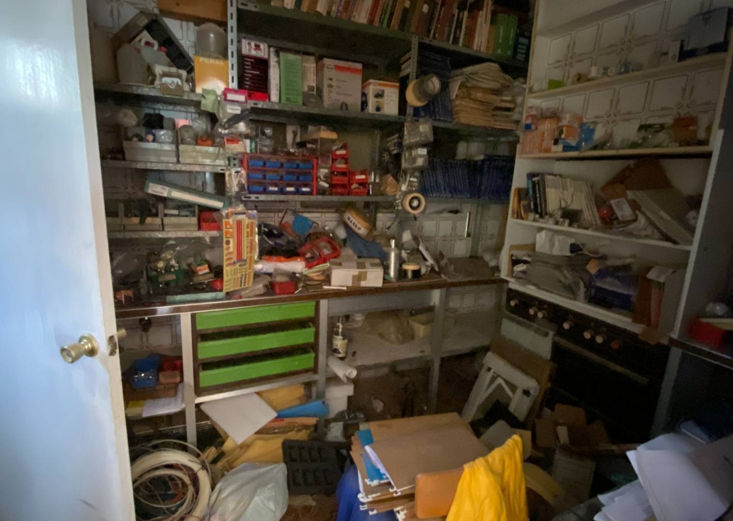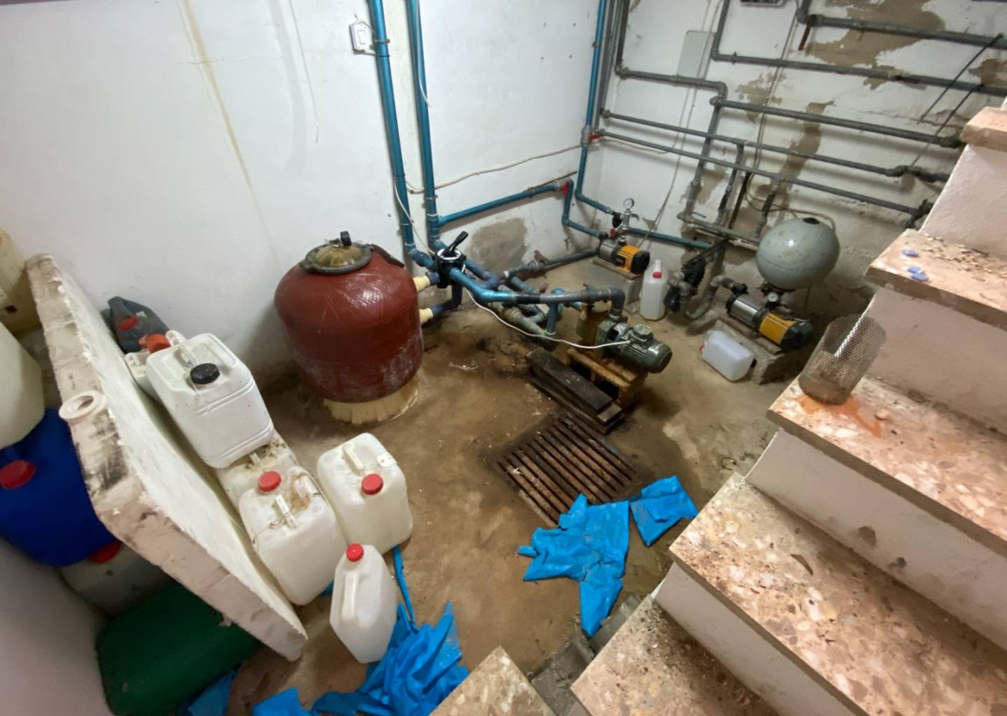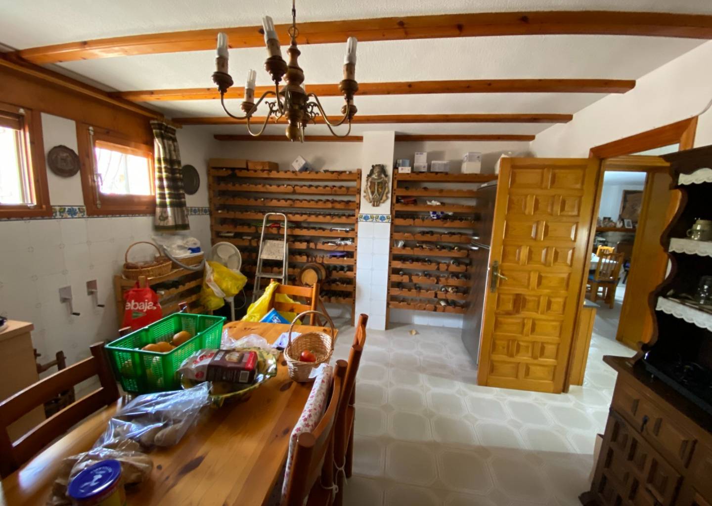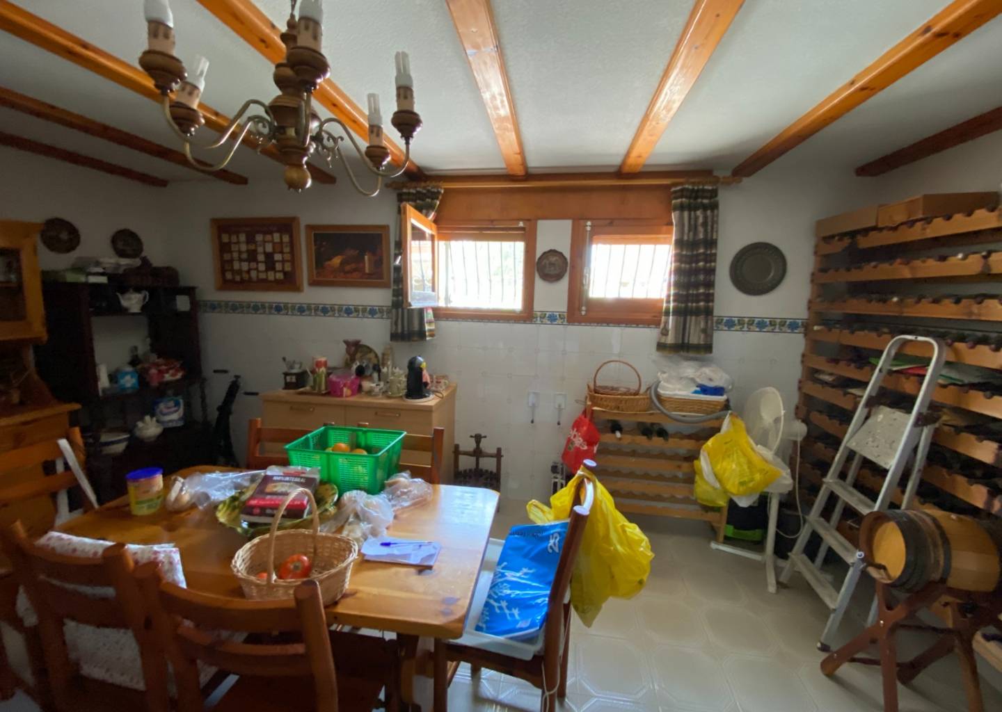 Si continuamos por el jardín, a la parte trasera de la piscina hay una casa de invitados con salón con chimenea, cocina y baño, aunque actualmente se está utilizando como taller para el hobby del propietario. Seguimos por la parte trasera de esta casita, que llegaría a la parte trasera de la casa principal, donde encontramos una cochera abierta con capacidad para varios coches y un trastero donde se encuentra la caldera de gasoil para la casa.