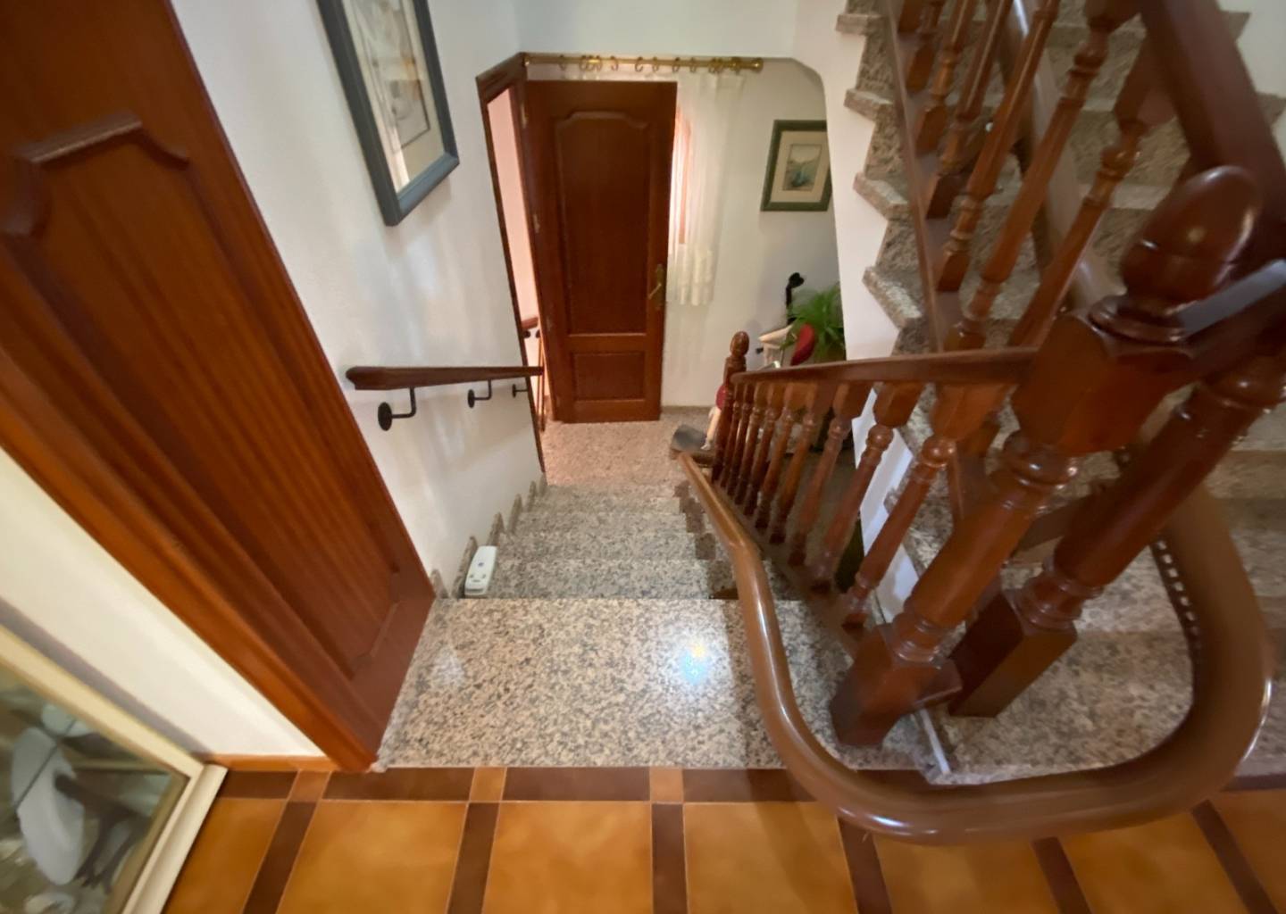 Desde el acceso y en la misma parte donde está al baño, pero a la parte izquierda se encuentran las escaleras para subir a la primera planta donde encontramos un salón con chimenea, un comedor con acceso a la terraza que da a la parte trasera de la casa, y la cocina, la cual tiene acceso directo, como he comentado anteriormente, a la zona de la piscina.
