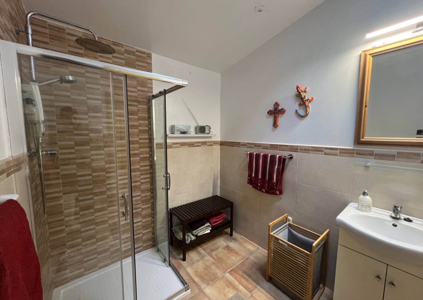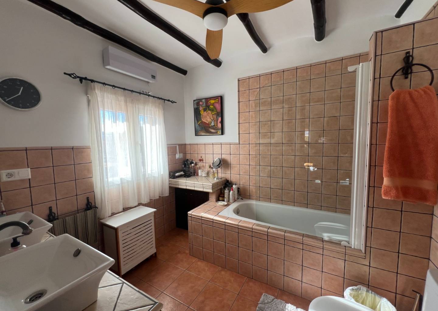 Hay una espaciosa terraza cubierta con espacio más que suficiente para una gran mesa de comedor y sillas para comer al aire libre, que conduce a una acogedora cocina-salón-comedor con detalles tradicionales y toques modernos. Desde la cocina hay unas escaleras que bajan a la pequeña bodega, un detalle maravilloso y una temperatura excelente para conservar el vino. Hay un buen número de bodegas locales a 15 minutos en coche y el vino, incluso el de alta gama, es muy barato aquí en España.