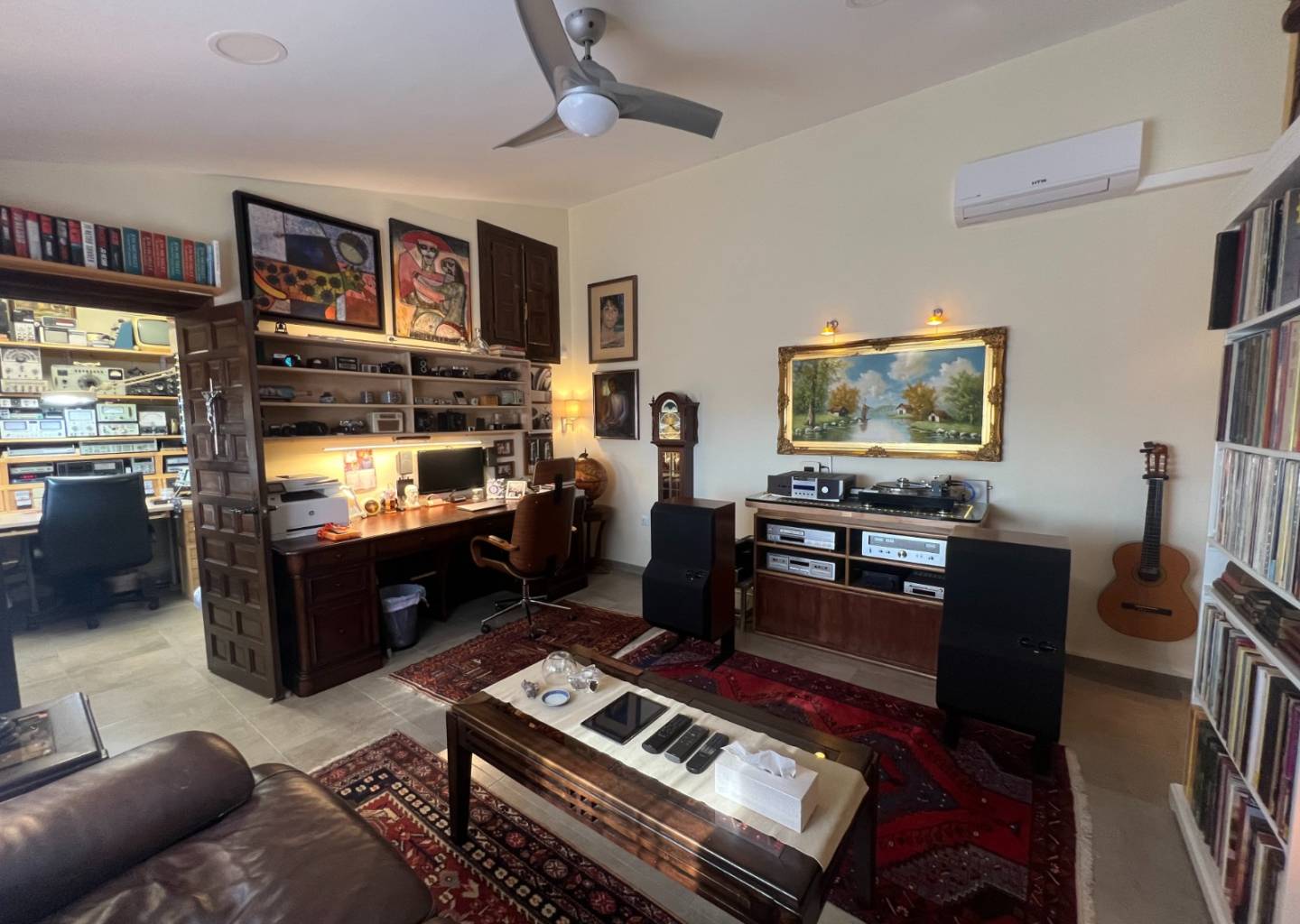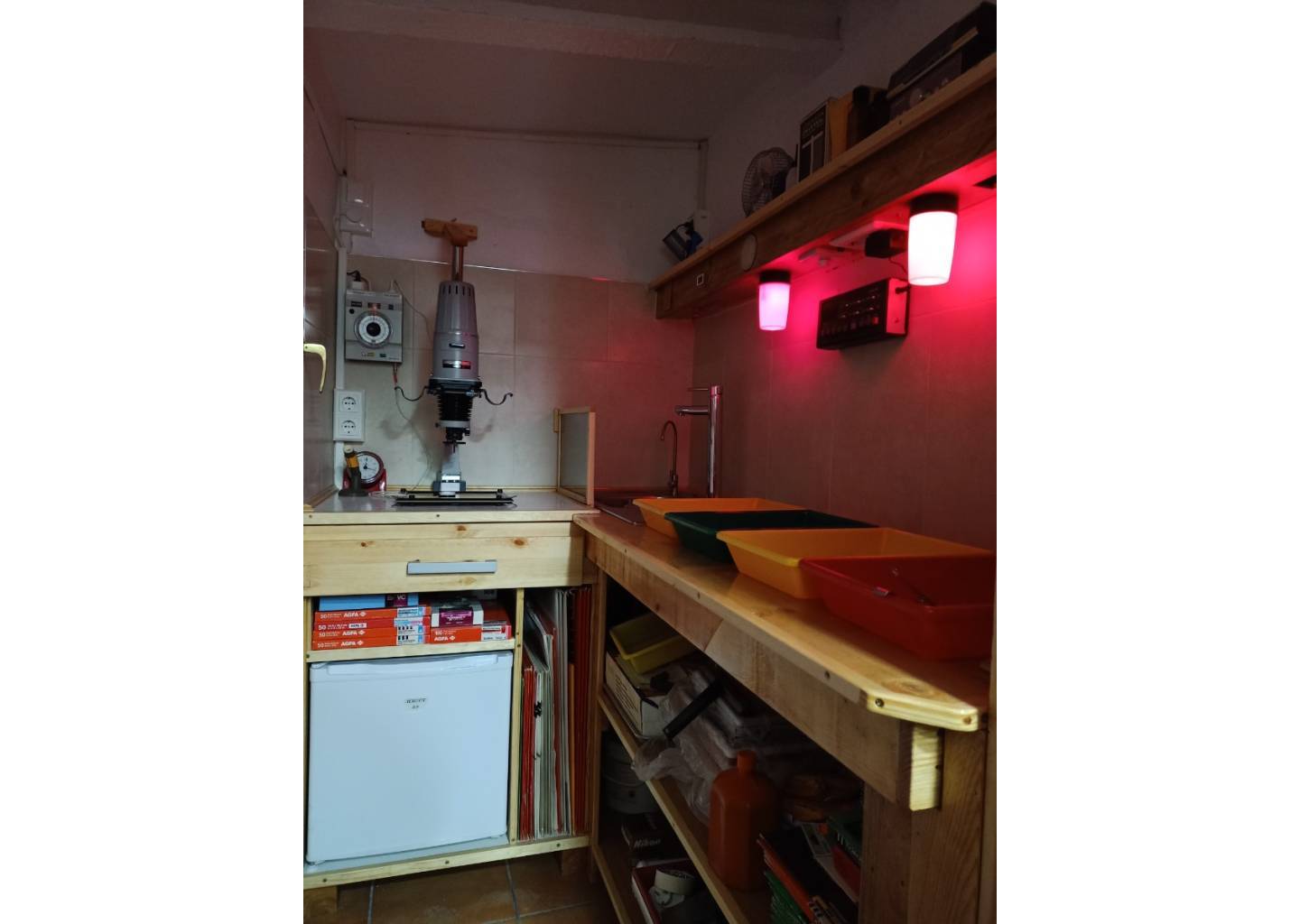 Pasamos a la casa de invitados. Originalmente eran establos, pero ahora se ha convertido en una propiedad totalmente independiente de 2 dormitorios y 1 baño, a tono con la casa principal. Ha sido diseñada con mucho gusto y es espaciosa. En un extremo de la casa de invitados hay un taller y un cuarto oscuro de fotografía, como podrá ver en las fotografías; es el lugar favorito del hombre de la casa.