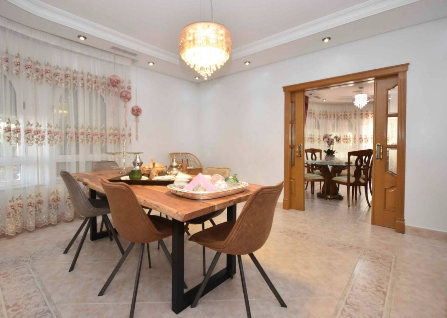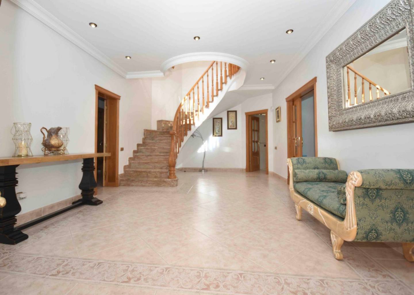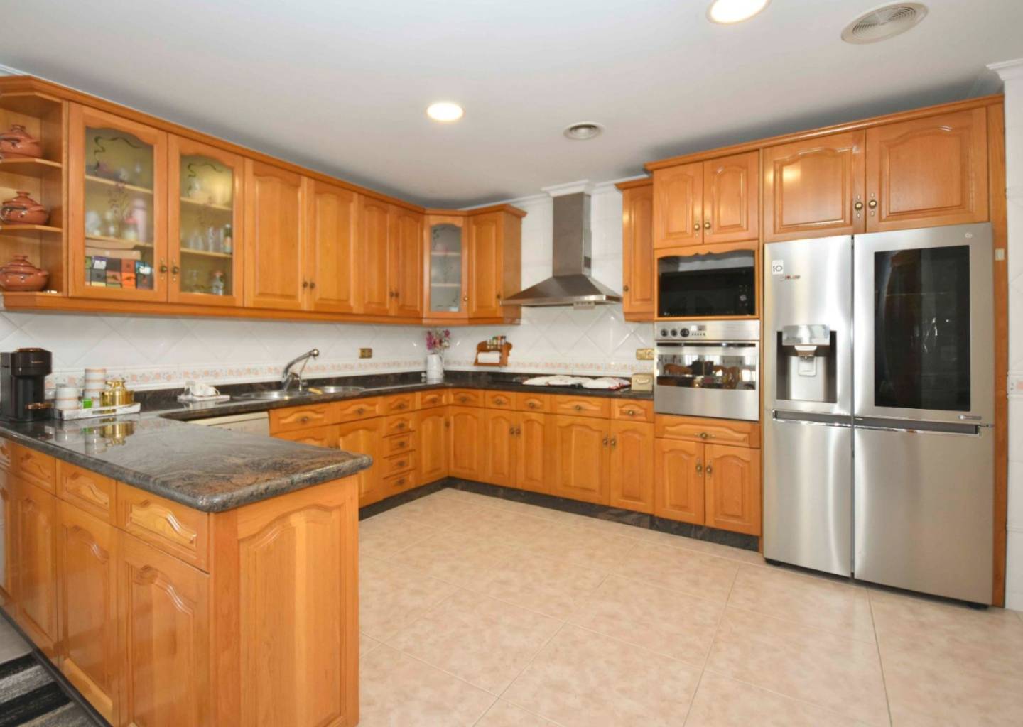 En la planta principal nos recibe un bonito hall con unas impresionantes escaleras, dando paso a un luminoso salón, con un comedor independiente ideal para reuniones familiares. La vivienda cuenta con una amplia cocina, muy funcional, que dispone de lavadero y despensa, además de acceso directo al garaje y salida a la parcela, donde se encuentra la zona de piscina.