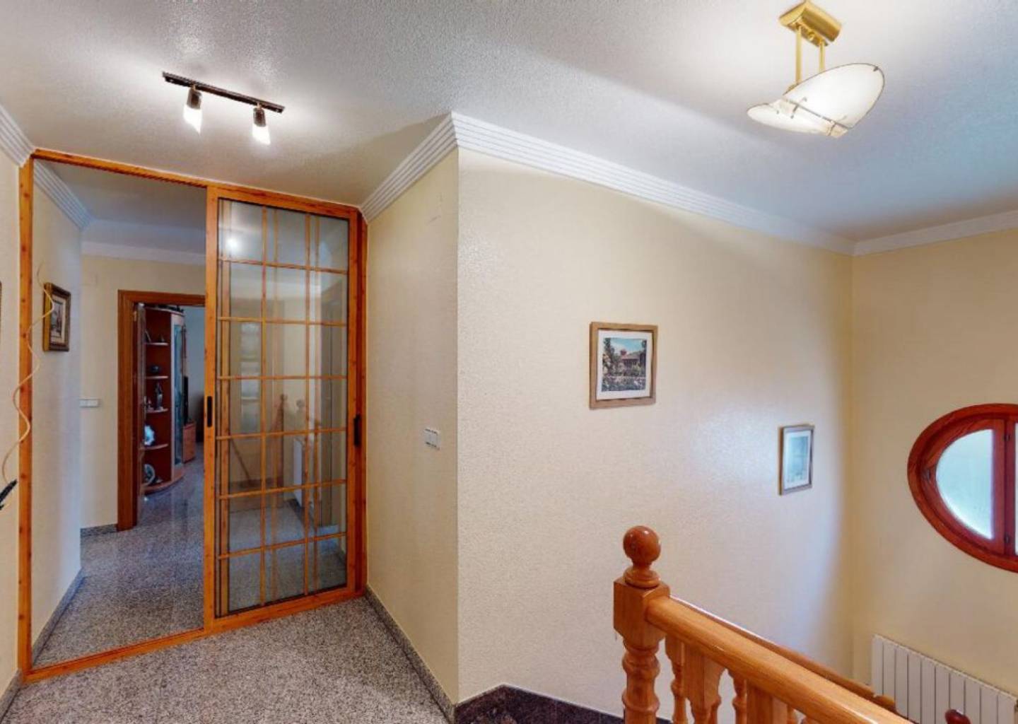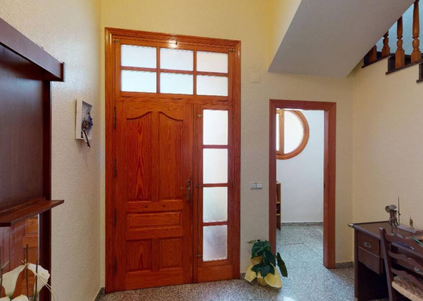 Al entrar, te recibe un espacio luminoso y acogedor. El recibidor conecta con una elegante escalera que lleva a la planta superior. A la derecha está el amplio garaje y, justo enfrente, el salón: un espacio cómodo y agradable, con vigas vistas en el techo y una chimenea decorativa que lo convierte en el lugar perfecto para relajarse o compartir momentos en buena compañía.