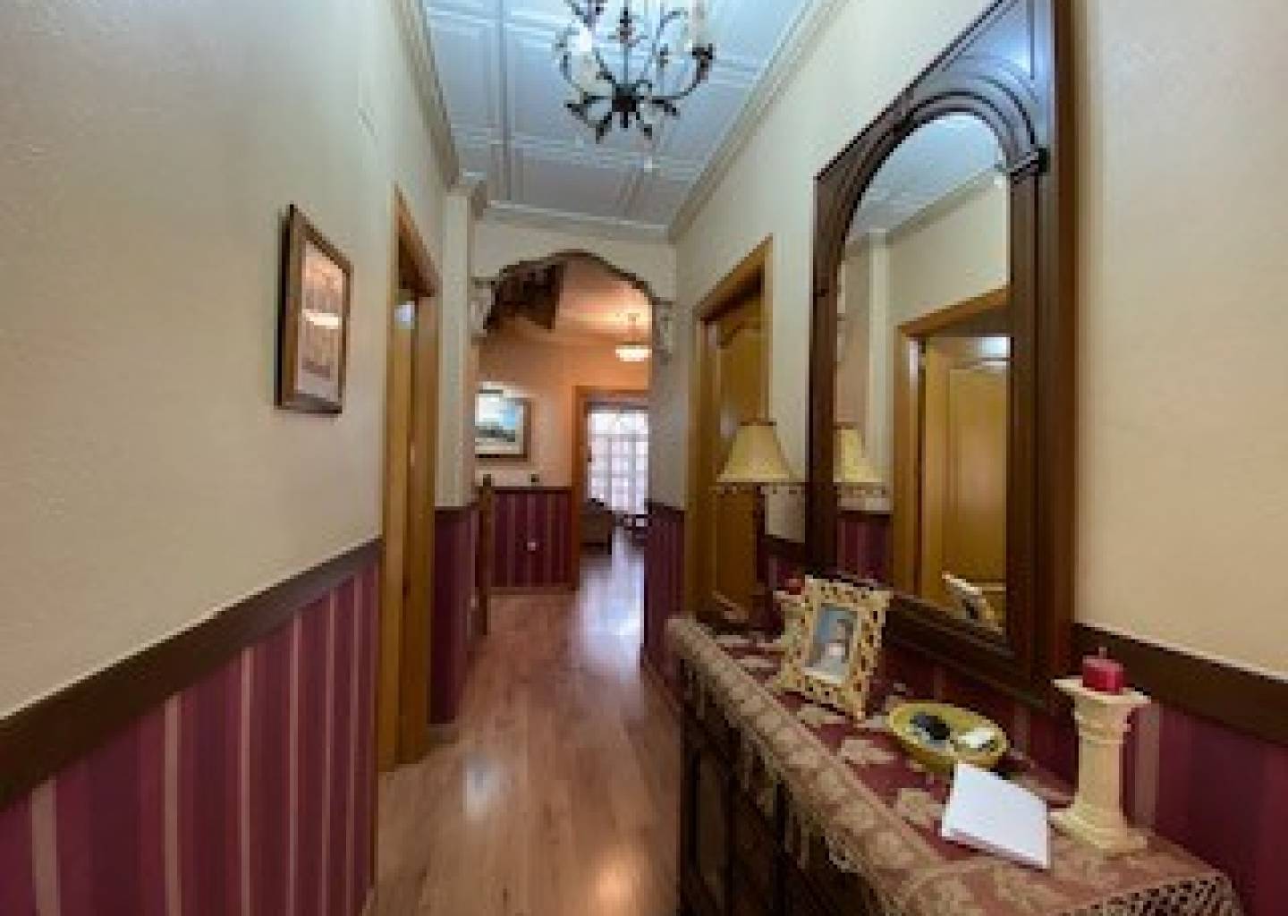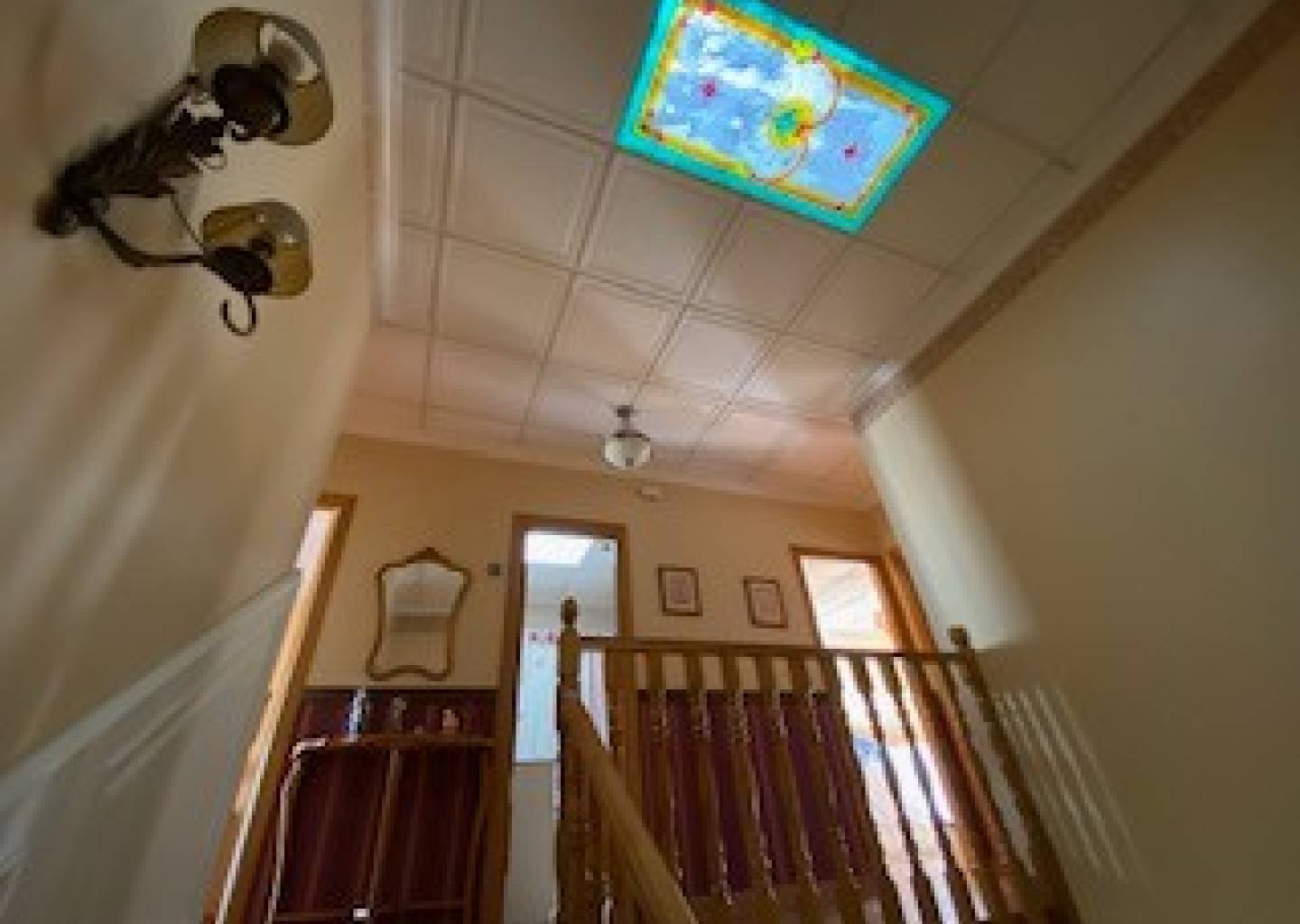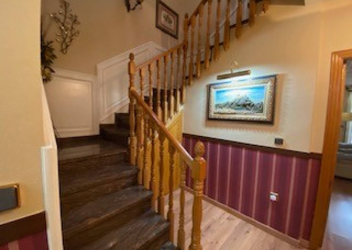Ascending a beautiful staircase bathed in natural light, we reach the upper floor.