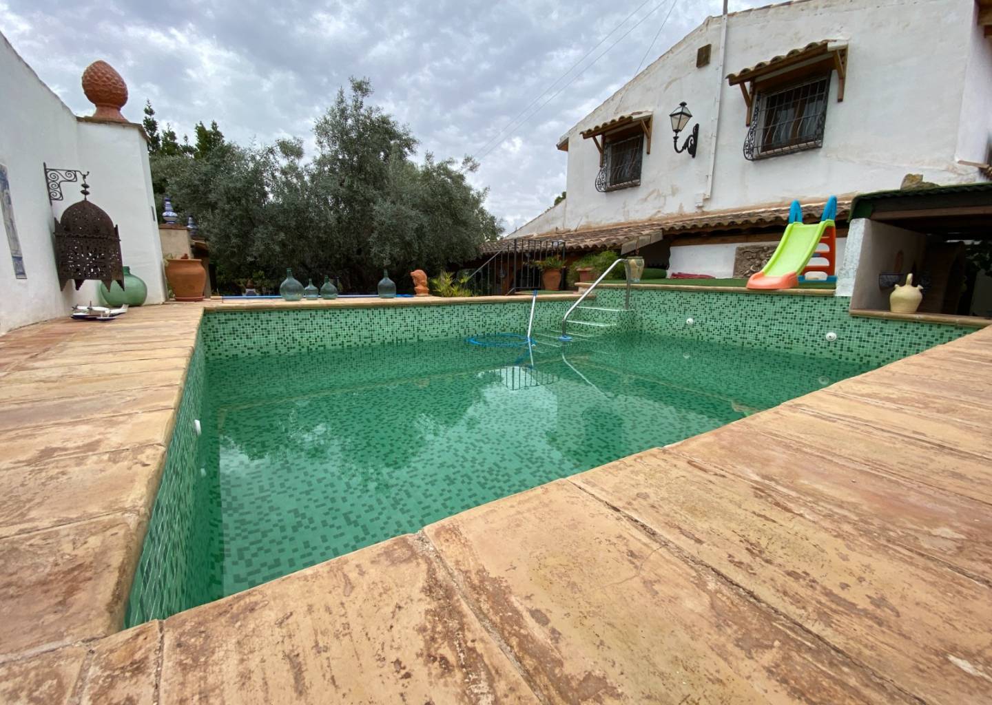 The pool area is gorgeous with a passageway designed in a Moorish Andalucian way with colourful ornate tiling that leads to a small Bodega, a superb Summer Kitchen with a big dining area for one of those 13 days when it rains and an exterior bathroom which is close to the pool.