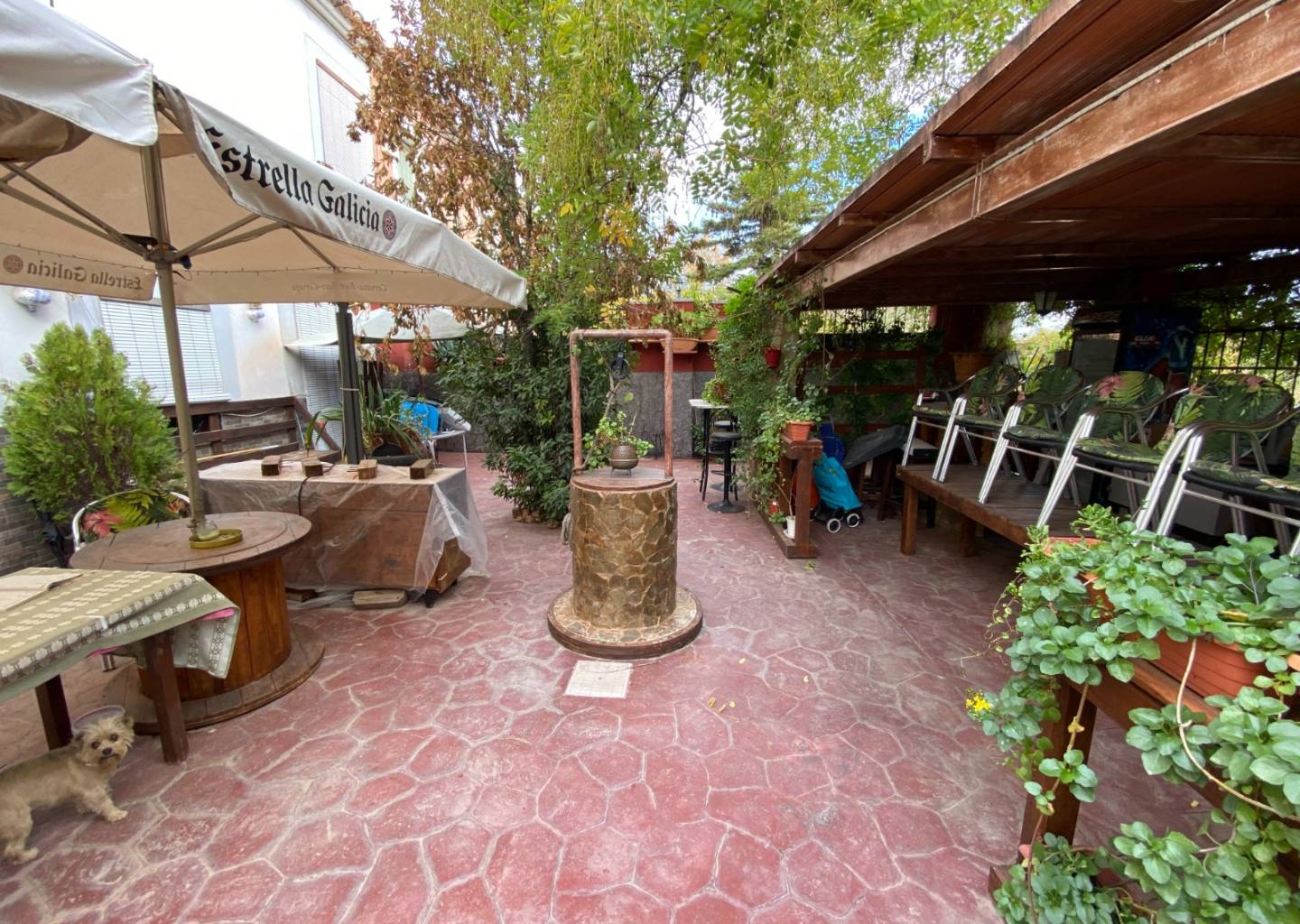 There is approximately 1,000m2 of land to the rear that has a small wooden cabin and an old above-ground water deposit from the days before mains water that can be converted into a swimming pool if required.