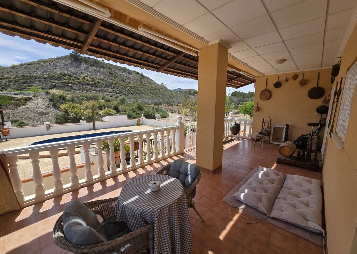 The villa features 4 bedrooms and 3 bathrooms, including well-proportioned rooms filled with natural light. A large terrace overlooks the landscape, while the swimming pool provides the perfect spot to relax and enjoy the panoramic mountain views.