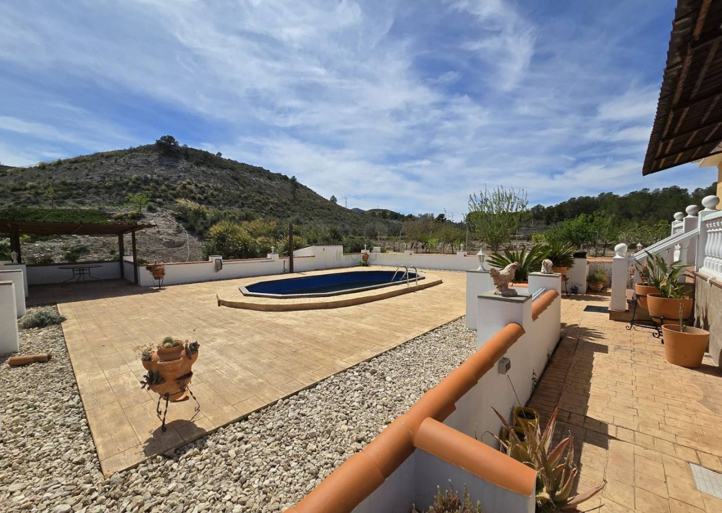 The property also includes stables, making it ideal for horse owners or those looking to create an equestrian setup. Outside, the grounds are thoughtfully landscaped with nicely presented gardens, providing a peaceful and attractive environment. Additional features include a double garage, carport and extensive open space around the villa.