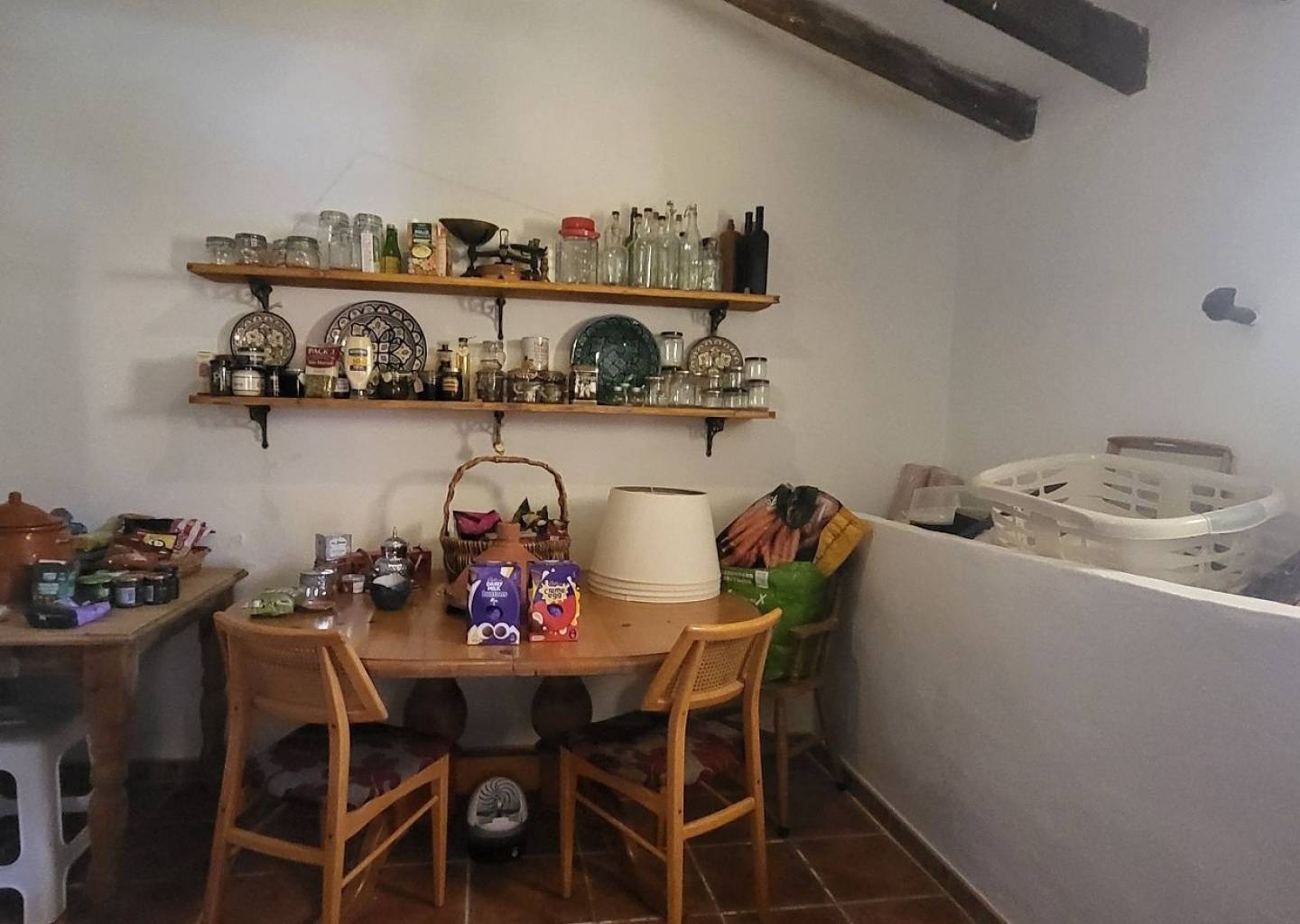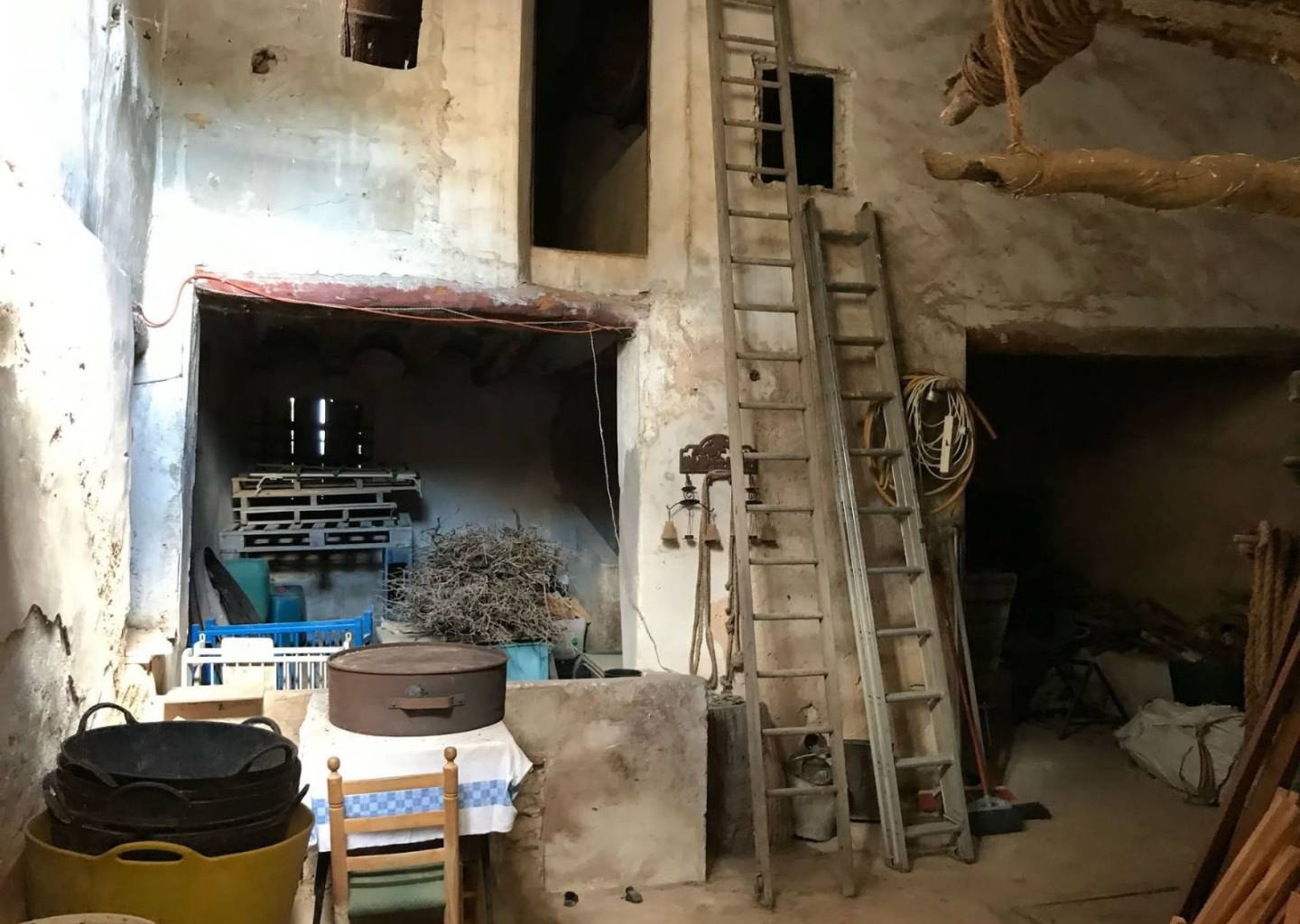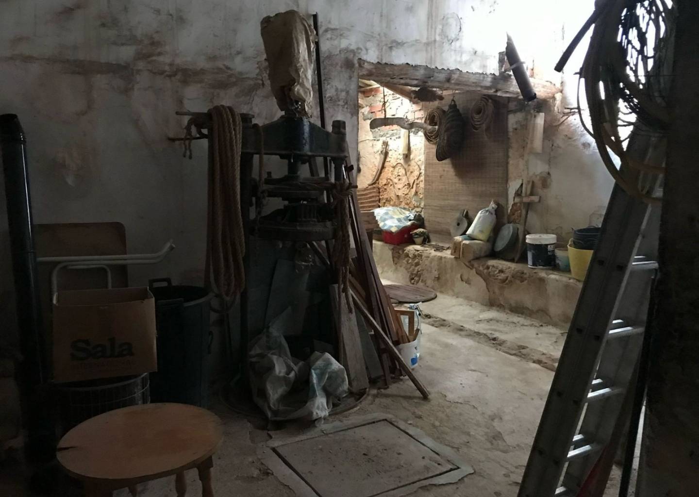From here, you can access a charming patio, an ideal spot for relaxing or al fresco dining. Across the patio is the cellar, complete with its original wine press. Although currently unrenovated, it offers great potential for conversion into a guest apartment or a spacious living room. Behind the cellar is a small, fully fenced plot of land.