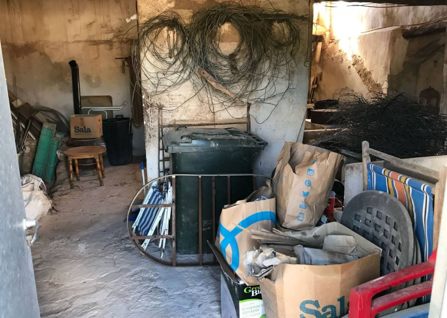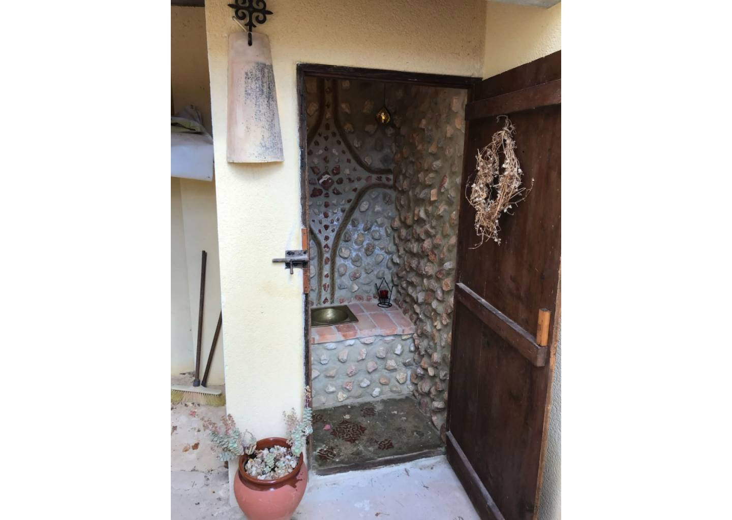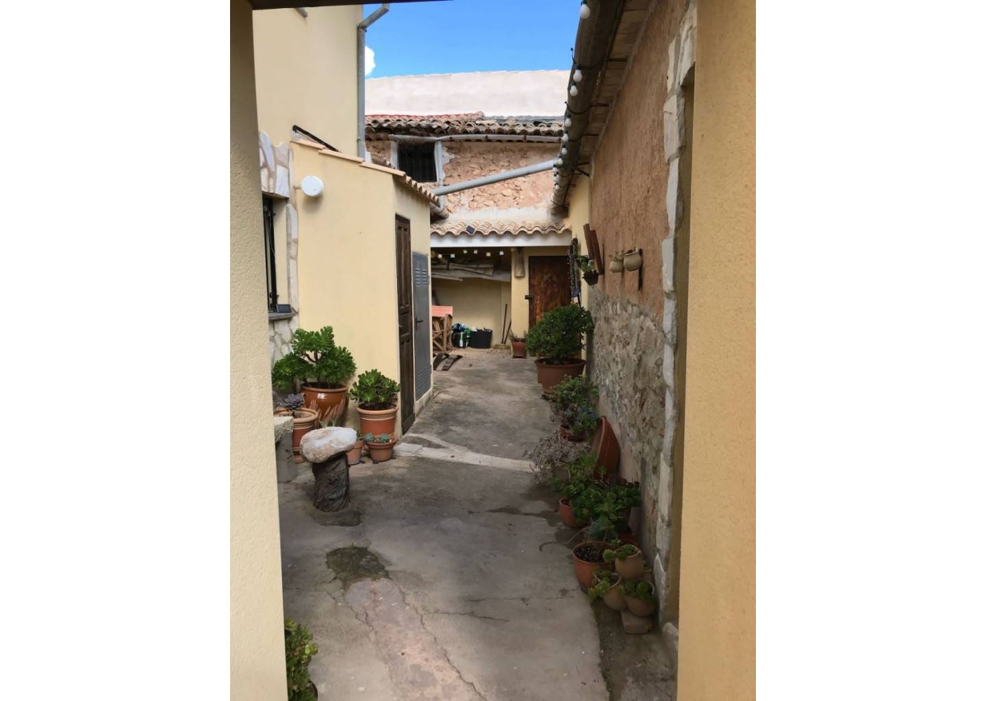 From here, you can access a charming patio, an ideal spot for relaxing or al fresco dining. Across the patio is the cellar, complete with its original wine press. Although currently unrenovated, it offers great potential for conversion into a guest apartment or a spacious living room. Behind the cellar is a small, fully fenced plot of land.