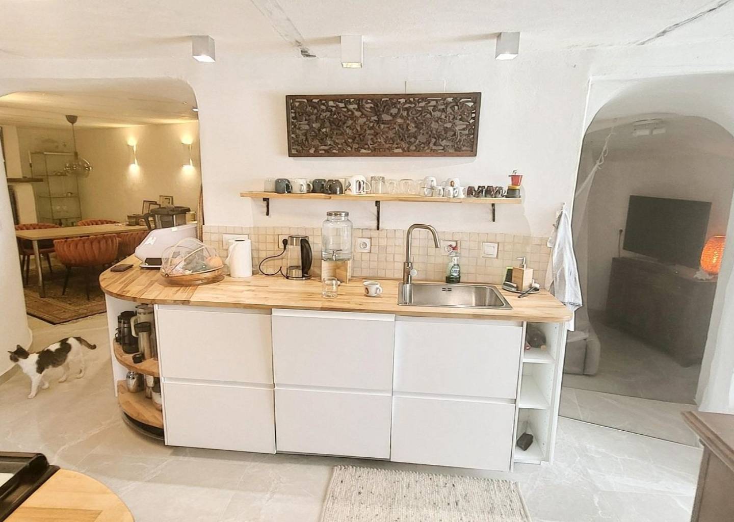 We are delighted to present this beautifully renovated cave house, located just 10 minutes from the picturesque village of La Romana. This property, meticulously renovated over the past year, features new electrical wiring, elegant flooring, a modern kitchen, and sophisticated lighting throughout. Tastefully decorated with designer lighting and characterful details, it is offered partially furnished. The accommodation includes: 2 comfortable bedrooms, a modern bathroom, a fully equipped kitchen, a separate dining room, and a cosy living room with a wood-burning stove. Situated on a fully fenced 6,261 m² plot, the property boasts an established olive grove with 40 mature olive trees. Outside, you will also find a small above-ground pool and ample space with excellent potential for creating stunning Mediterranean-style gardens. The house has mains electricity, a water tank, and very good access via well-maintained roads. This unique and inviting property offers a perfect blend of rustic charm and modern amenities, ideal as a peaceful retreat or a permanent residence full of character.